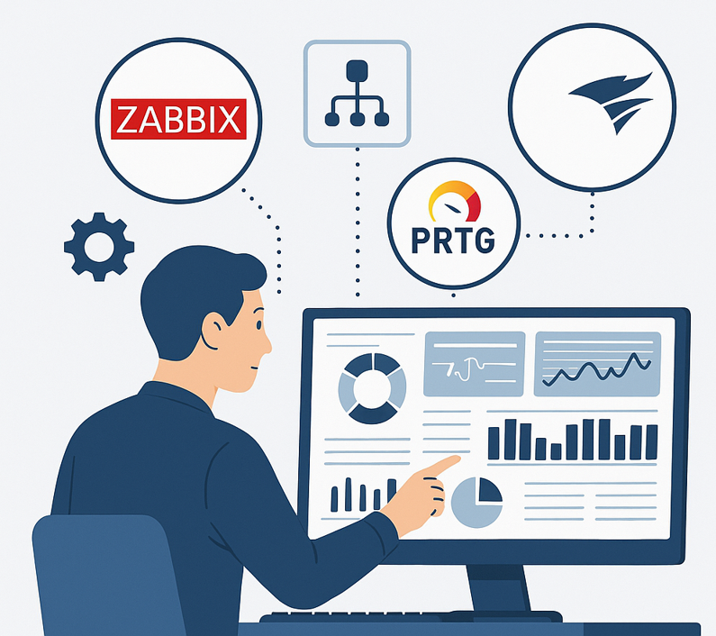 نقش ابزارهای مانیتورینگ (Zabbix، PRTG، SolarWinds) در پشتیبانی شبکه